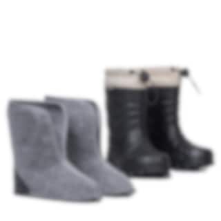 En lätt och varm barnstövel tillverkad i EVA-gummi med urtagbar filtsocka (30 % ull). Den breda och bekväma passformen gör stöveln perfekt för vinterbruk. Den urtagbara filtsockan och den justerbara snölåset upptill håller fötterna varma och torra – även under kalla och blöta dagar.