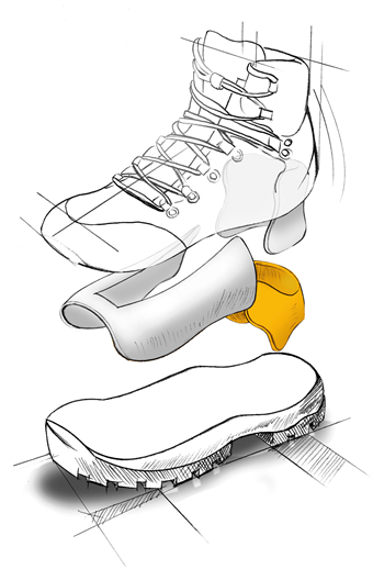 - När du har använt kängan i 5 minuter så har kroppsvärmen format MFS®-skummet runt vristen till just din fotform.